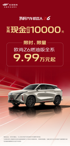 購歐尚Z6藍(lán)鯨新一代NE15T在售車型全系現(xiàn)金直降10000元,同時(shí)享4000元置換補(bǔ)貼,以及5萬36期0息金融支持。