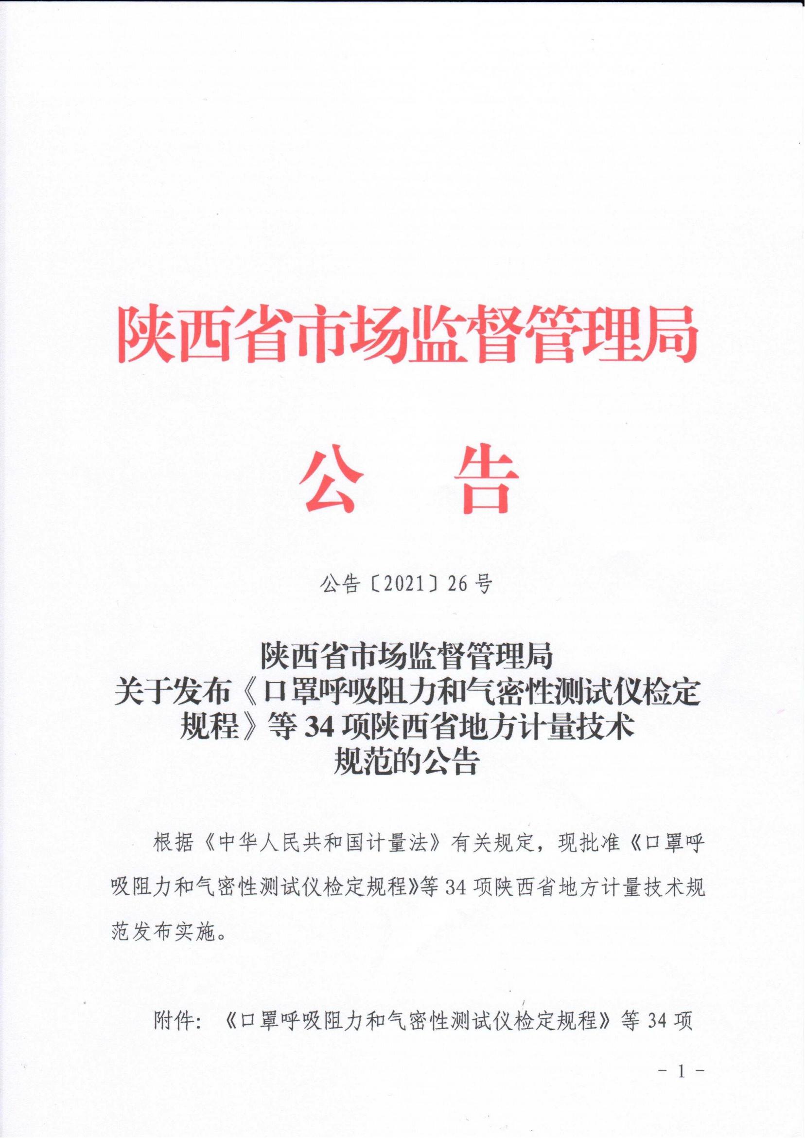 陜西省發(fā)布34項地方計量技術(shù)規(guī)范