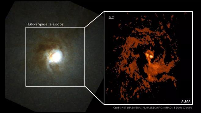 超大質(zhì)量黑洞(supermassive black hole,SMBH)的質(zhì)量范圍為太陽質(zhì)量的100萬至100億倍,此前并不清楚它們形成的原因。在一項發(fā)表于《皇家天文學(xué)會月刊》的文章中,科學(xué)家利用阿塔卡馬大型毫米波/亞毫米波陣列(ALMA), 在臨近的小星系NGC404的中心,觀察到了一個質(zhì)量低于100萬倍太陽質(zhì)量、迄今為止觀測到的最小的超大質(zhì)量黑洞。這一黑洞處于活躍狀態(tài),正在吸收周圍的氣體云。這一研究表明,較大質(zhì)量的超大質(zhì)量黑洞可能不由天體塌縮直接形成,而是會經(jīng)歷吸積增大的過程。