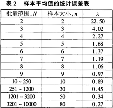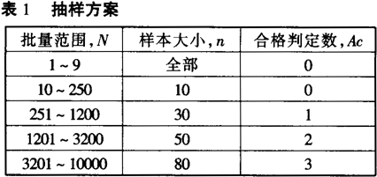 在考慮了生產(chǎn)方風(fēng)險(xiǎn)和使用方風(fēng)險(xiǎn)后,根據(jù)GB2828-1987給出了以下抽樣方案。如果檢驗(yàn)批中不合格單件數(shù)小于或等于合格判定數(shù)Ac,判該檢驗(yàn)批通過檢驗(yàn)。