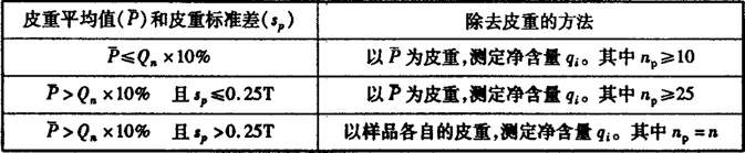 時,除去皮重的方法還不能確定,還需要看皮重標(biāo)準(zhǔn)差(sp)與允許短缺量(T)的關(guān)系,即根據(jù)sp≤0.25T或sp>0.25T確定除去皮重的方法。
