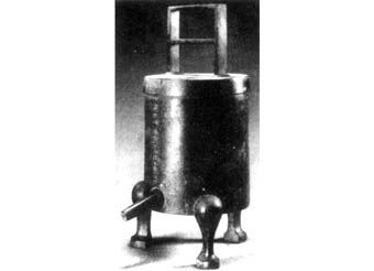 漏壺是據(jù)水流量計(jì)時(shí)的儀器,分單壺泄水型和多壺受水型兩種。千章銅漏壺是早期泄水型漏壺中最大、保存最完好的一件。1976年發(fā)現(xiàn)于中國內(nèi)蒙古伊克昭盟杭錦旗沙丘內(nèi)。通高47.9厘米。壺身作圓筒形,下有三蹄足,接近底部有一出水管。上有雙層提梁,在壺蓋和雙層提梁當(dāng)中有上下對(duì)稱的 3個(gè)方孔,用以安插并扶直浮箭。內(nèi)底鑄“千章” 2字。壺身外面刻銘:“千章銅漏一,重卅二斤,河平二年(公元前27)四月造。”在第二層梁上加刻“中陽銅漏” 4字。因知此器原在千章,后歸中陽,西漢時(shí),兩縣同屬西河郡。