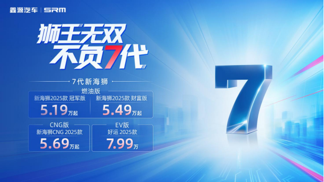 2025年4月10日,鑫源汽車通過官方直播正式宣告7代新海獅正式上市,同步推出燃油、CNG、EV三種動力選擇,官方指導價5.19萬元起。