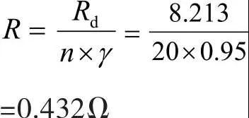 式中:Rd——一組離子接地系統(tǒng)的使用效果;R——n組離子接地系統(tǒng)使用后的效果;n——使用離子接地系統(tǒng)的組數(shù);γ——利用系數(shù),γ為0.95。