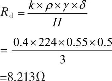 式中:Rd——電解離子接地系統(tǒng)的接地電阻;k——電解離子接地系統(tǒng)效率,為0.4;ρ——土壤電阻率(Ω·m);γ——降阻回填降阻率,為0.55;δ——電解離子接地系統(tǒng)的初始離子擴(kuò)散半徑,為0.5m;H——電解離子接地系統(tǒng)的長度,為3m。